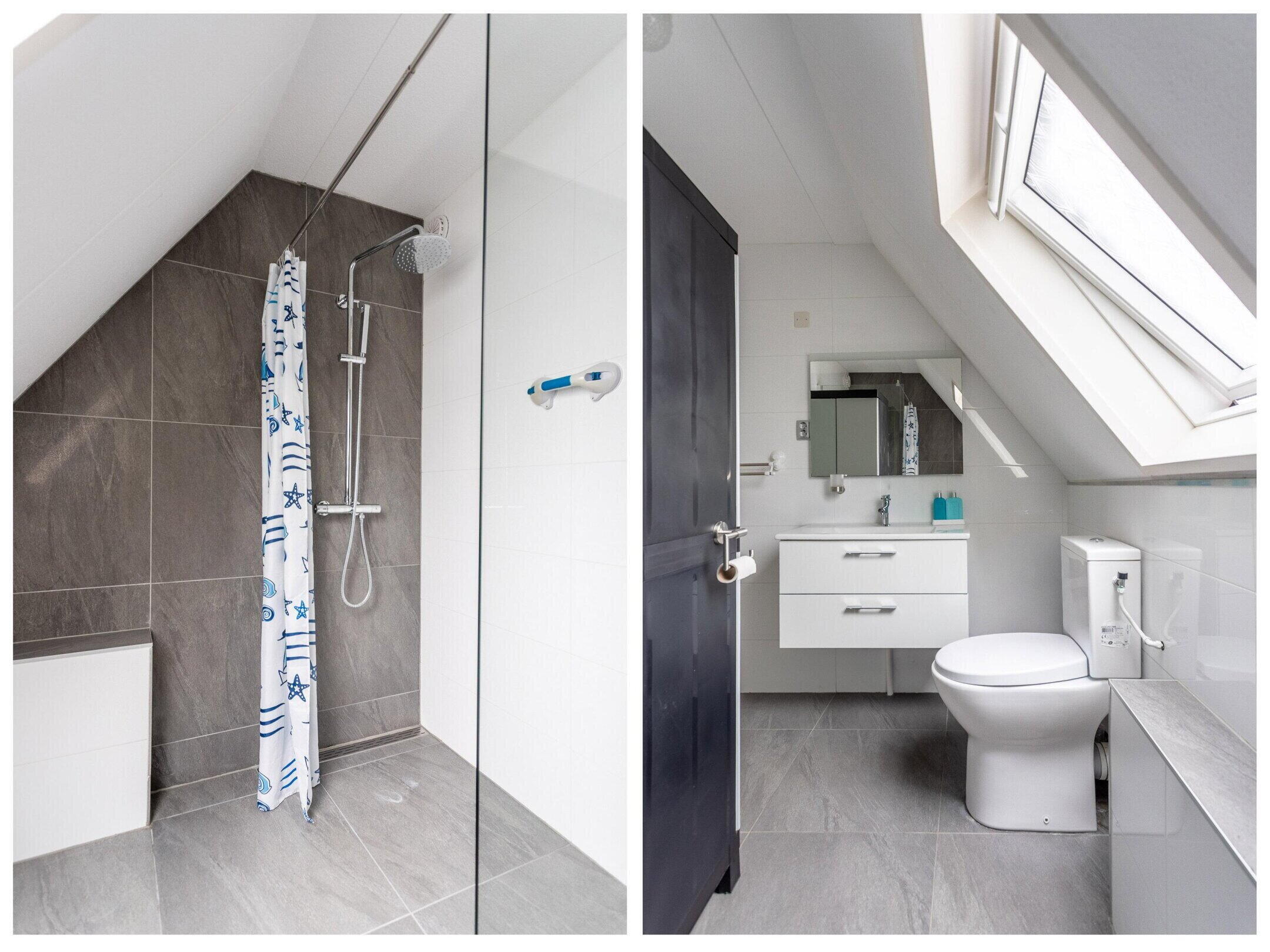 - Toilet, douche, wastafel, wastafelmeubel, wasmachineaansluiting toilet, inloopdouche